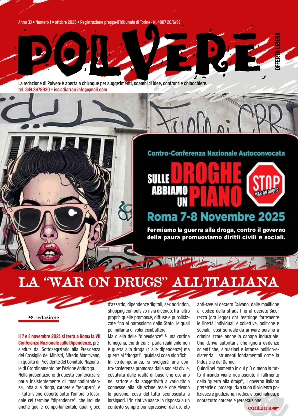 - diretta telefonica con Teresa dell’associazione Isola di Arran su conferenza e controconferenza sulle droghe di Roma